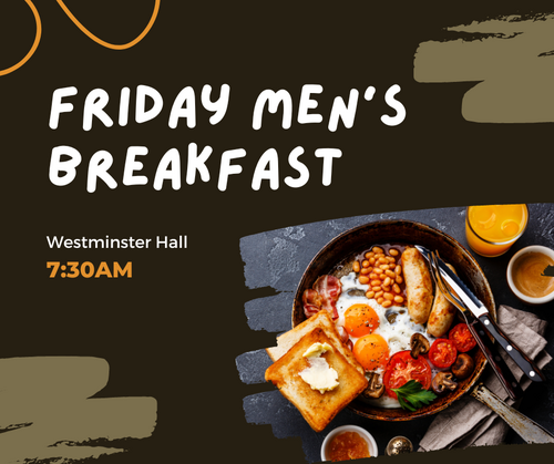 Our Saturday Morning Breakfasts are scheduled 7 times annually, generally the 3rd Saturday of each of the following months; September, October, November, January, February, March and April. They include a full hot breakfast, fellowship, hymns, and a guest speaker. We have a ‘hard stop’ at 10:00 a.m. Our 8th regularly scheduled event is a Friday evening steak fry on the 3rd Friday of May. Men of all ages are welcome to join us at all our events unless otherwise indicated.